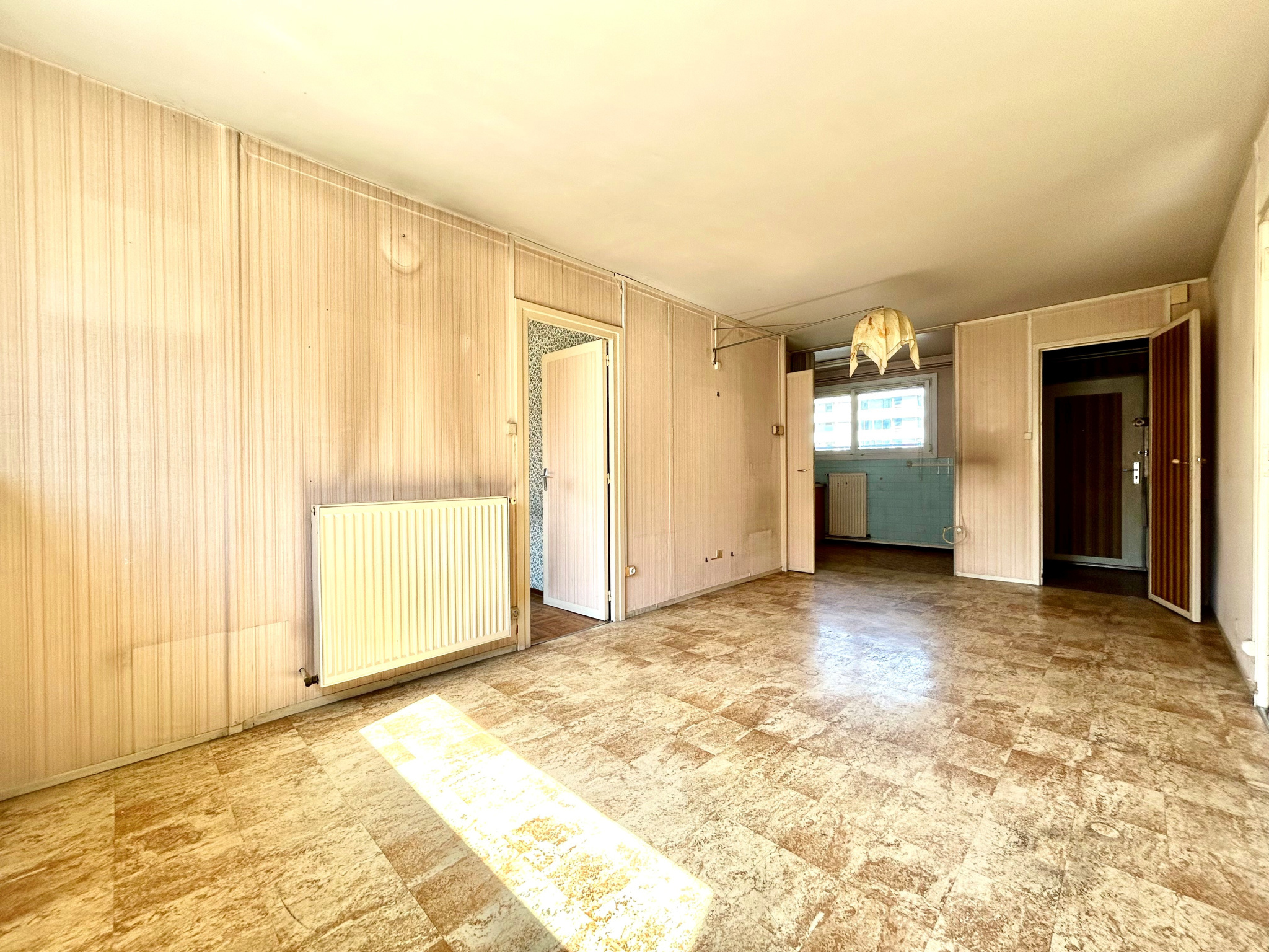 GRENOBLE - Au 62 rue Léon Jouhaux, dans une coprorpiété bien tenue, appartement de type T4 de 62,28m² à rénover. Il est actuellement composé d'une entrée avec rangement, d'un séjour avec cuisine attenante semi-ouverte, de trois chambres avec rangement et d'une salle d'eau. Ce bien est très modulable avec peu de murs porteurs. Une cave en sous-sol et facilité de stationnement. Charges annuelles : 840€ Copropriété de 40 lots principaux Prix de vente : 80 000€ honoraires charge acquéreur. Les informations sur les risques auxquels ce bien est exposé sont disponibles sur le site Géorisques du Gouvernement.